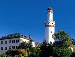 Die ehemalige Residenz der Landgrafen von Hessen-Homburg wurde um 1680-85 anstelle einer mittelalterlichen Burg errichtet. Markantes Zeichen ist der freistehende Bergfried des 14. Jahrhunderts, der die um zwei Höfe gruppierte Barockanlage überragt. In den Schauräumen des Schlosses werden Kunstschätze vom 17.-19.Jahrhundert gezeigt. Sie veranschaulichen die Wohnkultur der Landgrafen sowie auch der preußischen Könige und deutschen Kaiser, die Homburg 1866 - 1918 als Sommersitz nutzten. Der Schlosspark wurde in der 2. Hälfte des 18. Jahrhunderts unter Beibehaltung barocker Strukturen in einen Landschaftsgarten umgestaltet.